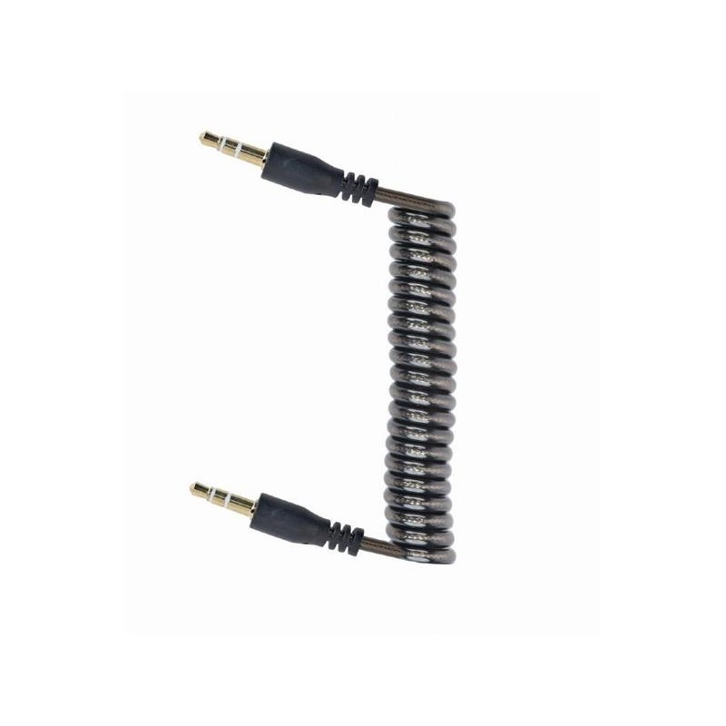 Spiral audio cable with two gold plated 3.5 mm stereo connectors