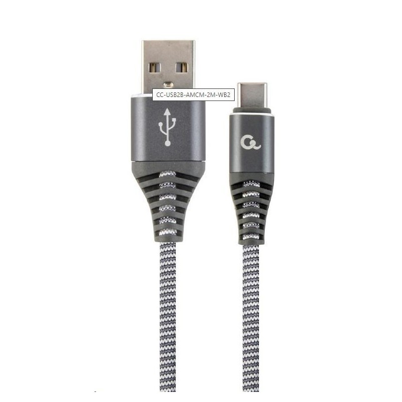 Premium cotton braided Type-C USB charging and data cable, 2 m, spacegrey/white