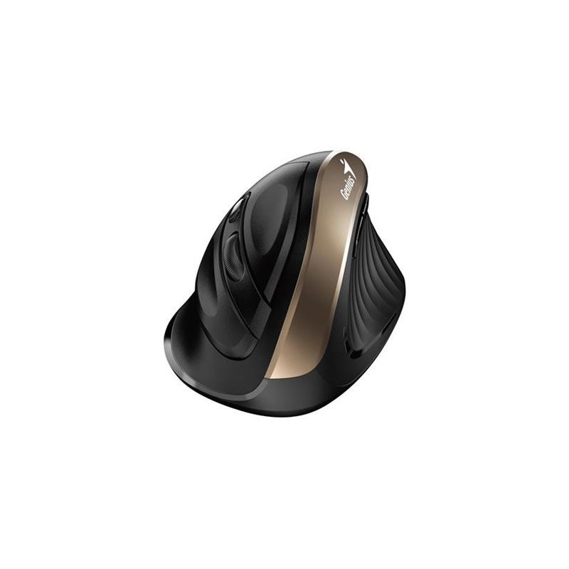 Genius Ergo 8250S, Myš, bezdrátová, vertikální, 1600DPI, 6 tlačítek, tichá, černo-zlatá