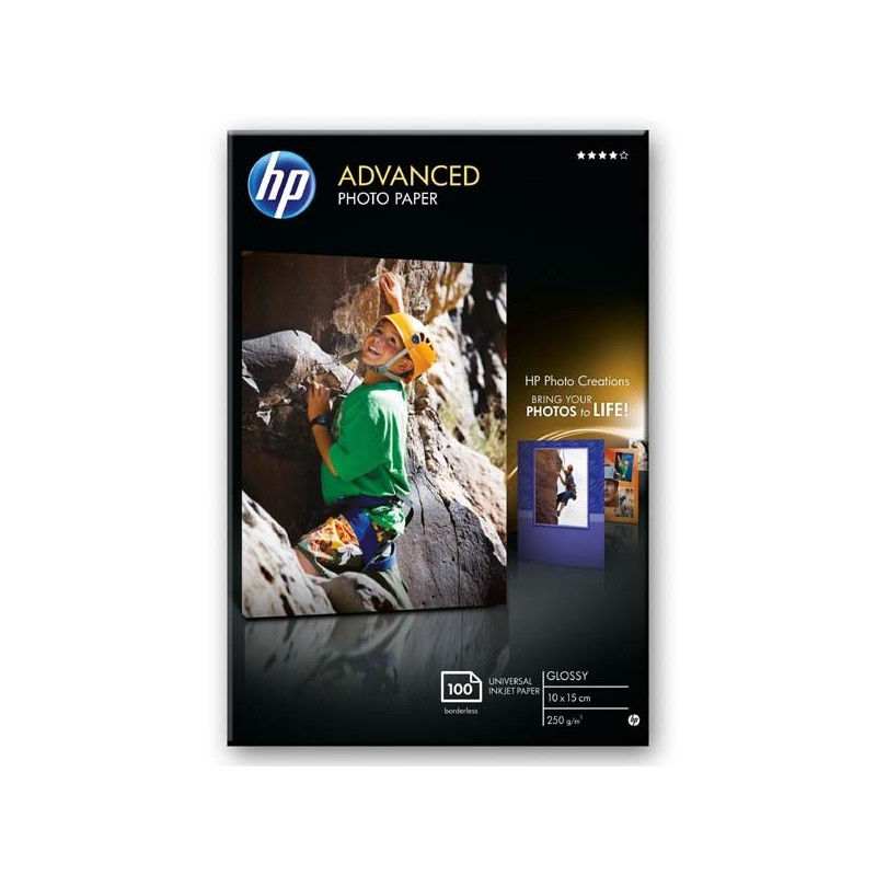 HP Advanced Glossy Photo Paper, bez okrajov typ lesklý, zdokonalený typ biely, 10x15cm, 4x6", 250 g/m2, 100 ks Q8692A
