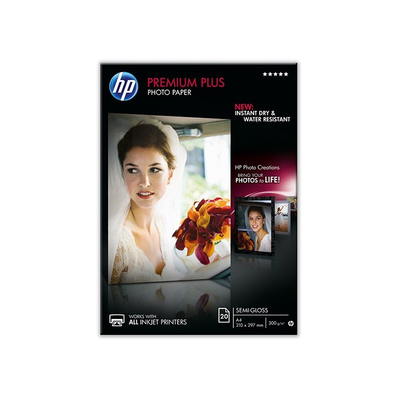 HP Premium Plus Semi-Gloss Photo Paper, foto papier, pololesklý, biely, A4, 300 g/m2, 20 ks, CR673A, atramentový