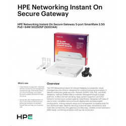 HPE Networking Instant On Secure Gateways sú cloudovo spravované brány určené pre malé a rastúce podniky, ktoré chcú zvýšiť bezpečnosť svojej siete alebo bezpečne expandovať do nových lokalít. Tieto brány, navrhnuté špeciálne pre SMB, poskytujú monitoring siete 24x7, IDS/IPS engine a blokovanie domén pre zvýšenú ochranu. Vďaka hardvérovému zrýchleniu, aj pri aktivovaných všetkých týchto funkciách, môže brána stále zabezpečiť takmer lineárnu priepustnosť.