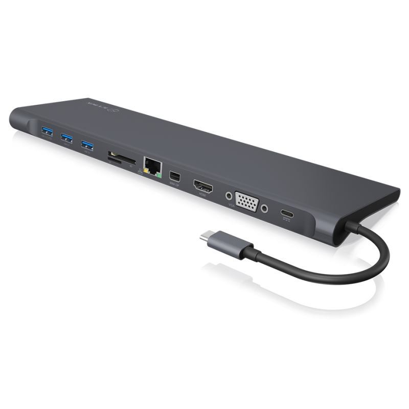 Praktická multidokovacia stanica z USB Type-C, obsahuje konektory: 3x USB 3.0, 1x Gigabit LAN, 1x miniDisplayPort , 1x HDMI, 1x VGA, 1x čítačka microSD/SD kariet, 1x USB Type-C s Power Delivery 2.0 a 1x stereo combo jack,