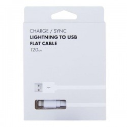 Dátový a nabíjací kábel s konektorom Lightning. Umožňuje prenášať dáta medzi Mac/PC a iPhonom, iPadom alebo iPodom. Dĺžka kábla je 120 cm. Plochý profil kábla zamedzuje zamotaniu.