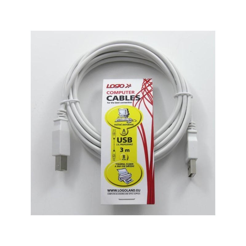Kábel USB (2.0), USB A M- USB B M, 3m, šedý, Logo 30261
