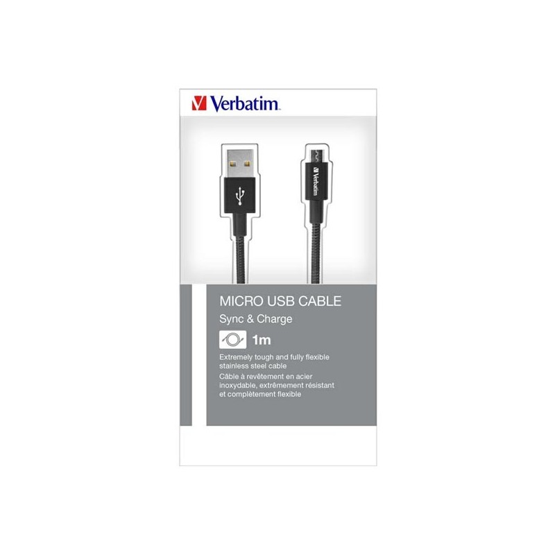 Kábel USB (2.0), USB A M- USB B Micro M, 1m, reversible, čierny, Verbatim