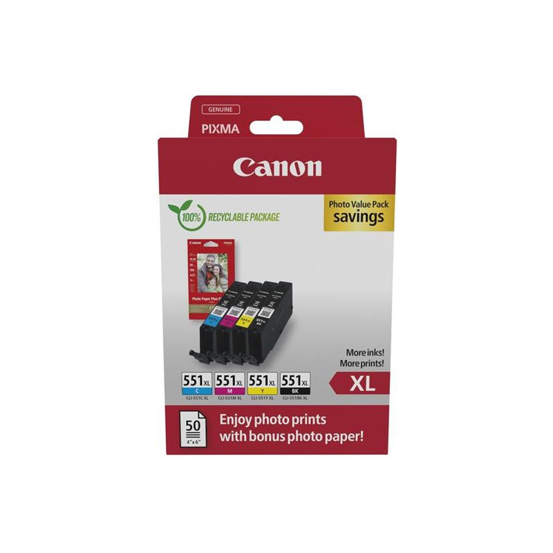 kazeta CANON CLI-551XL BK/C/M/Y PACK MG 5450/6350, iP 7250, MX 925 + PP201 10x15 6443B008