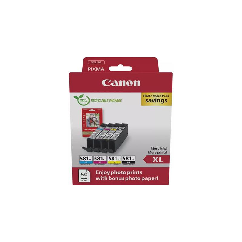 Atramentové kazety CANON CLI-581 black XL + cyan XL + magenta XL + yellow XL pre: