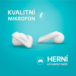 Vďaka kodeku AAC poskytuje LAMAX Clips1 ANC dokonale vyvážený a krištáľovo čistý zvuk. Hráči a filmoví nadšenci ocenia herný režim s nízkou latenciou. Často volajúci si môžu vychutnať vynikajúcu kvalitu hovoru vďaka zabudovanému mikrofónu, ktorý vám umožní mať telefón schovaný, zatiaľ čo slúchadlá zostanú v ušiach. K pohodliu prispieva aj dotykové ovládanie. Okrem výkonu tieto slúchadlá zaujmú aj svojím estetickým vzhľadom, takže sú vhodné do práce, na zábavu alebo na špeciálne príležitosti. Bez problémov sa integrujú aj so službami Siri a Google Assistant, čo zvyšuje ich užitočnosť.