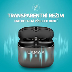 Mikrofóny v slúchadlách vedia vyhodnotiť a potlačiť okolitý hluk pomocou ANC režimu, hudbu ale neskreslia, naopak si ju užiješ oveľa viac. Už žiadni kriklúni okolo, divný zvuky v MHD alebo stále telefonujúci kolega, len ty a muzika. Keď je ale potrebné vnímať okolie napríklad na rušnej križovatke, prihlási sa o slovo transparentný režim. Cudzie zvuky zosilnejú, takže ani pri platení v obchode nemusíš vyberať slúchadlá.