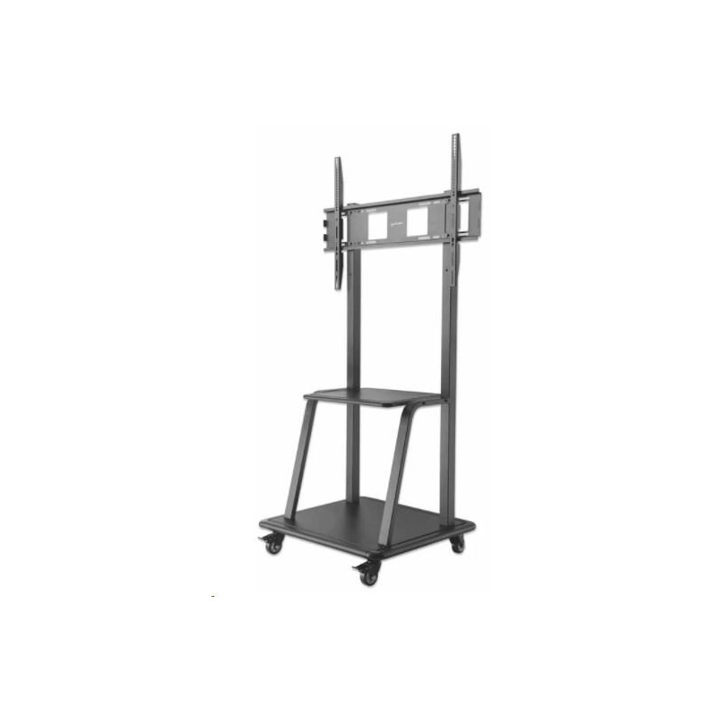 Overcome odd floor plans, annoying glare and restrictive furniture arrangements that can diminish flat-panel TV experiences. The Manhattan Universal Heavy Duty TV Cart helps achieve optimal viewing angles from almost anywhere in the room. VESA-compliant and constructed of quality materials, this high-quality TV cart fits a range of display sizes and offers a secure above-the-floor installation.Ideal for residential, office, hospitality, classroom and conference room, digital signage and other commercial applications, the Manhattan Universal Heavy Duty TV Cart brings high-performance LCD or plasma TV enjoyment front and center.