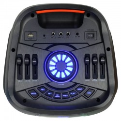 Osvetlenie membrán basového reproduktora vám dá pocit, že ste na skutočnej diskotéke! Ak však chcete počúvať romantickú hudbu v pohodlí svojej izby, môžete jednoducho vypnúť LED svetlá . Okrem bezdrôtového mikrofónu nájdete v súprave s našim reproduktorom aj diaľkové ovládanie, pomocou ktorého môžete pohodlne nastavovať hlasitosť alebo meniť skladby či rozhlasové stanice.