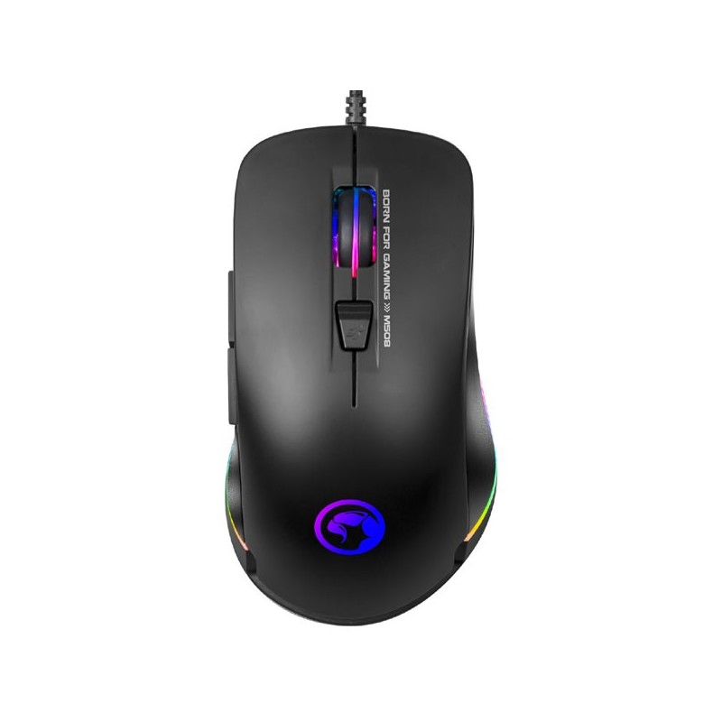 Optická herná myš Marvo M508Profesionálny vzhľad s výborným tvaromPre herných nadšencov alebo len občasných hráčov bude myš M508 správnou voľbou. Tvar, ktorý sa vyhol "hernej prehnanosti", pestré farebné podsvietenie a vysoký profil zaručí najvyšší komfort pre hráčov s úchopom drápy alebo dlane. Myš však nájde svoje využitie nie len v hrách, ale aj v bežných kancelárskych aplikáciách alebo pri nehernej zábave.