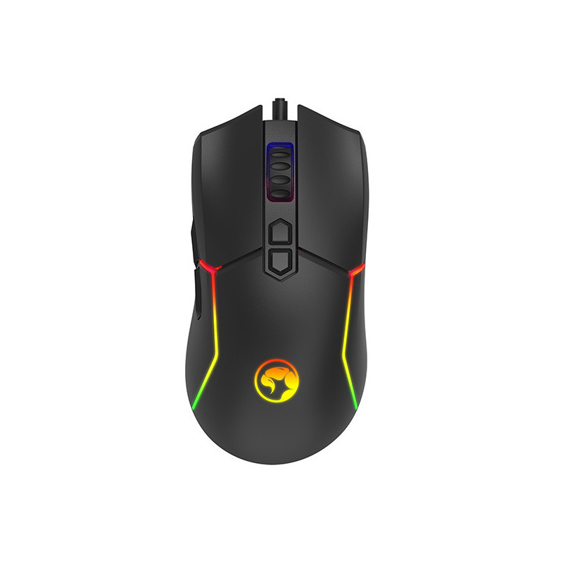 Ak ste náročnejší užívateľ a DPI je pre vás číslo jedna, táto myš Marvo je stvorená priamo pre vás. Hráči sa delia do dvoch kategórií - prvá polovica preferuje nižšiu senzitivitu, toto sa týka predovšetkým FPS hier a klasických strieľačiek. Kde je na prvom mieste presnosť. Druhá polovica, ktorá si vyžíva vo vyššej senzitivite, uvíta túto funkciu pri strategických hrách kde pohyb po mape musí byť dostatočne rýchly a efektívny. Pomocou jediného tlačidla sa dá meniť toto nastavenie DPI a to 800-1600-2400-3200-6400-12000. Ergo design sa hodí na všetky typy úchopu a ani po hodinách hrania nepocítite únavu. RGB podsvietenie je tu pre temné nočné hry, keď si môžete nastaviť niekoľko štýlov, farieb a efektov podľa nálady.