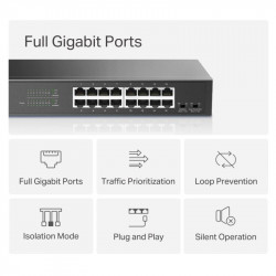 MERCUSYS MS116GS, 16-Port 10/100/1000 Mbps Desktop Switch - 16-portový gigabitový stolný/rackmount prepínač, 6× 10/100/1000 Mbps Auto-Negotiation RJ45 port s podporou Auto-MDI/MDIX, Režim izolácie umožňuje oddelenie klientskej prevádzky jedným kliknutím pre vyššiu bezpečnosť a výkon, Monitorujte a riešte problémy súvisiace so slučkami vo vašej sieťovej štruktúre, aby ste zabránili narušeniam spôsobeným slučkami, Odolné kovové puzdro