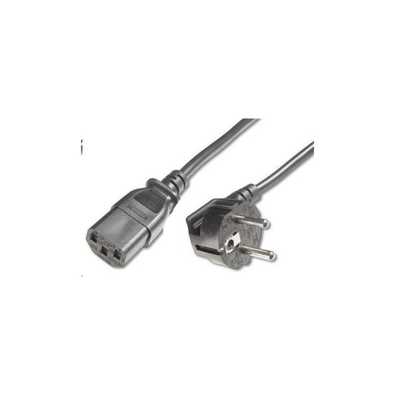 Napájecí kabel v černém provedení pro počítač nebo monitor. Třížilový kabel je zakončený standardní přístrojovou zástrčkou.