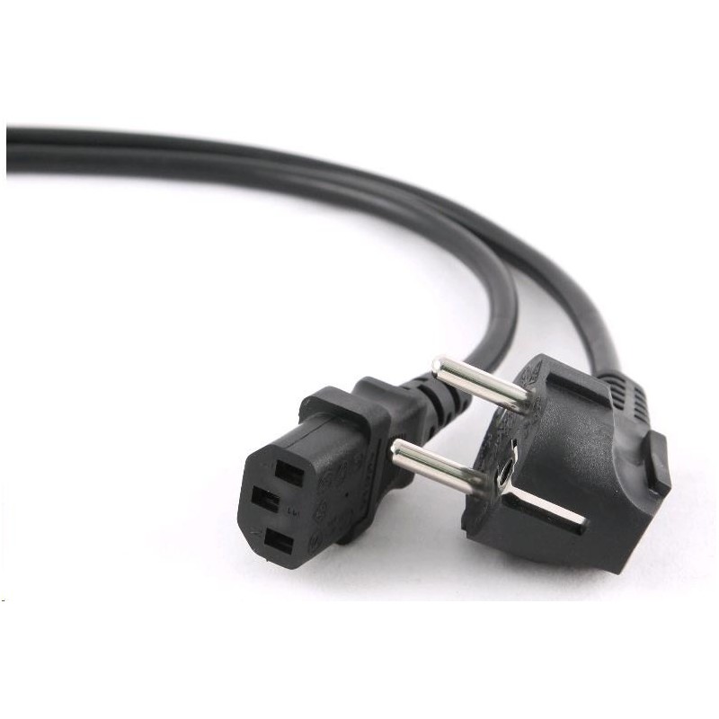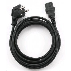 Napájecí kabel v černém provedení pro počítač nebo monitor. Třížilový kabel je zakončený standardní přístrojovou zástrčkou.