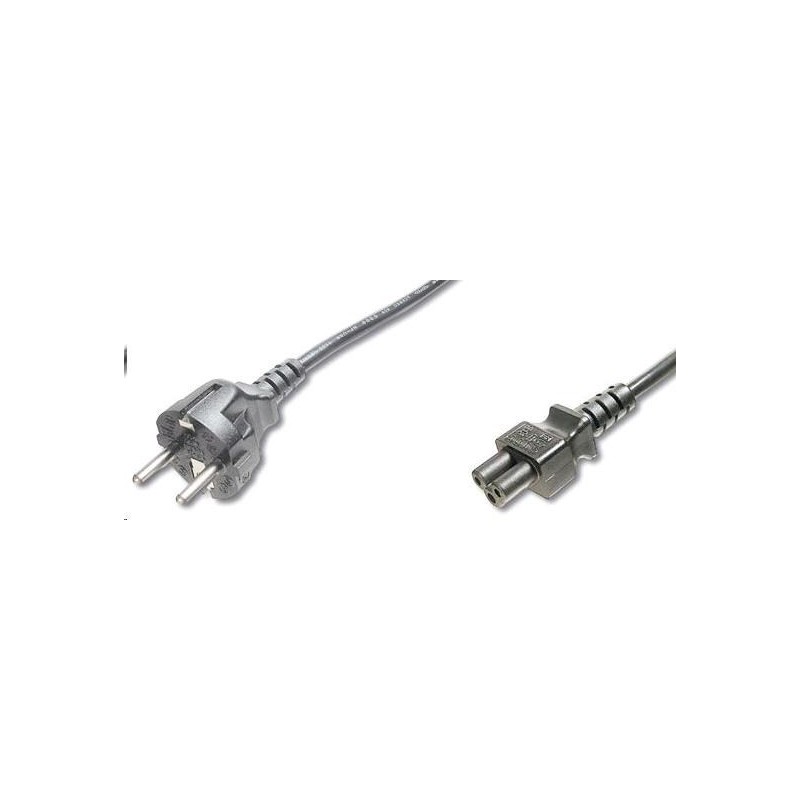Napájecí kabel v černém provedení pro notebook. Třížilový kabel je zakončený zástrčkou typu "Mickey mouse" IEC 320 C5.