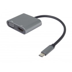 Tento adaptér umožňuje vysoce kvalitní převod videa a zvuku z USB-C konektoru na HDMI a VGA konektor pro dva monitory/TV/projektory. Funguje jako externí grafická karta s dvěma výstupy.