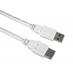 PremiumCord USB 3.0 prodlužovací A-A kabel male-female, 9pin - 9pin, 0,5m, CU, AWG28/28, stíněný, UL, bílá.