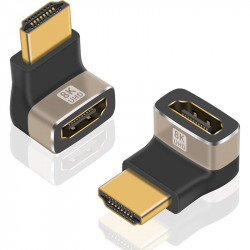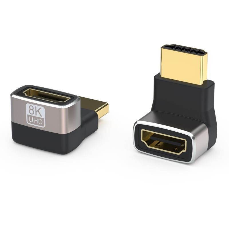 PremiumCord 8K Adaptér spojka HDMI A - HDMI A, F / M, zahnutá do pravého uhla 90° (ohnutá smerom dole), HDMI adaptér slúži na zapojenie kábla do zariadenia pod uhlom 90 °, Podporuje rozlíšenie: 8K @ 60Hz, 4K @ 120Hz, FULL HD 1080p, Prenos signálu je stopercentne digitálny a bez akejkoľvek straty kvality. Konektory: HDMI female - HDMI male. HDMI prepojka vysokej kvality. Zastreknutá redukcia s hliníkovým puzdrom. Pozlátené konektory. Pozlátené kontakty. Farba: Space Grey. Balenie PVC sáčok s popisom a EAN čiarovým kódom