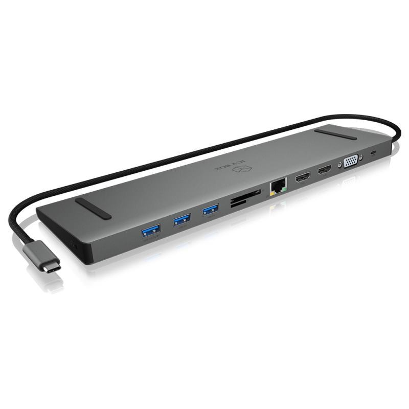 Praktická multidokovacia stanica z USB Type-C, obsahuje konektory: 3x USB 3.0, 1x Gigabit LAN, 1x miniDisplayPort , 1x HDMI, 1x VGA, 1x čítačka microSD/SD kariet, 1x USB Type-C s Power Delivery 2.0 a 1x stereo combo jack