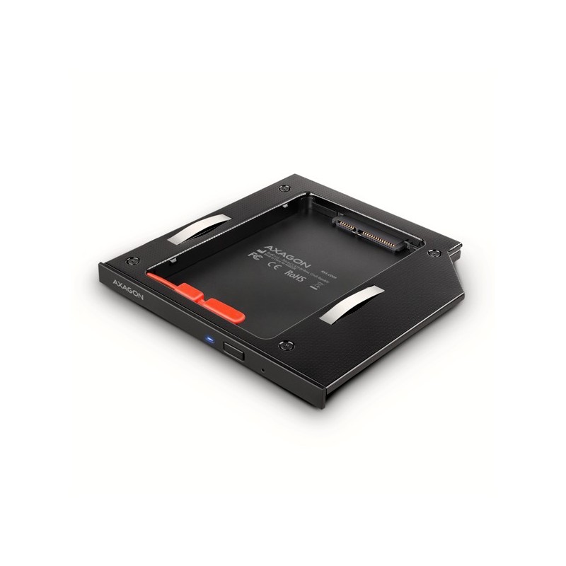 Vnútorný rám AXAGON RSS-CD09 na montáž na miesto existujúcej CD/DVD mechaniky s výškou 9.5 mm. Je určený pre 2.5" disky SSD/HDD SATA. Optickú jednotku v prenosnom počítači môžete ľahko nahradiť pevným diskom.