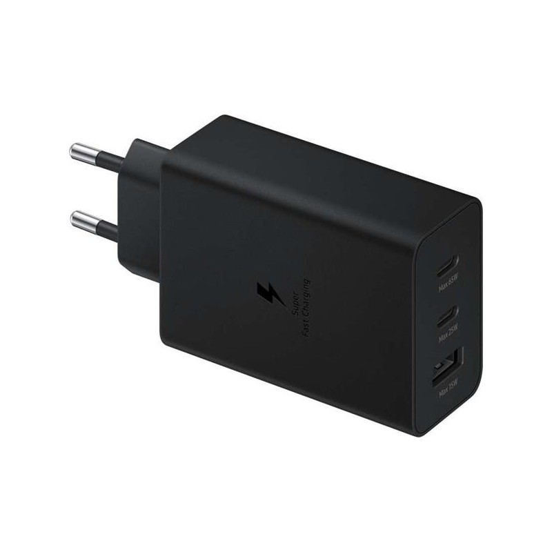 Nabíjačka do siete s podporou rýchleho nabíjania, celkový výkon 65 W, výstupy 1 × USB-C (max. 65 W), 1 × USB-C (max. 25 W) a 1 × USB-A (max. 15 W), technológie rýchleho nabíjania Fast Charge, USB Power Delivery a Adaptive Fast Charging.