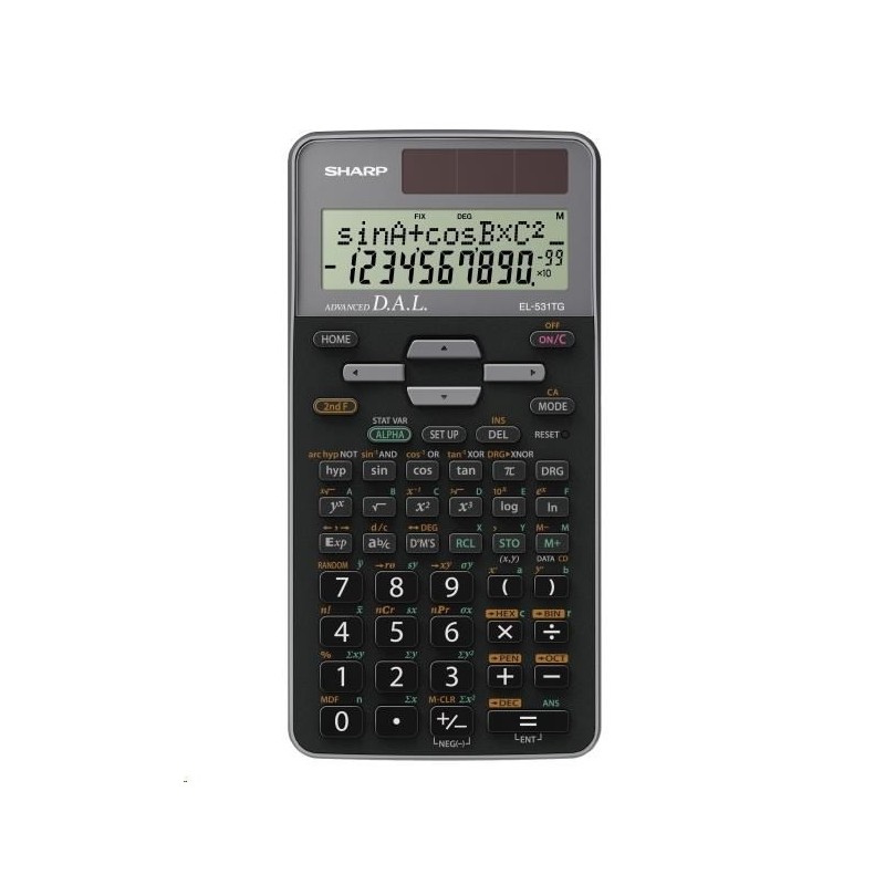 Vědecký kalkulátor EL-531TG obsahuje 273 matematických funkcí a je vhodný zejména pro studenty středních škol. Má solární napajení se záložní baterií, přehledný 2řádkový displej a pevný plastový kryt, který chrání kalkulátor před poškrábáním a pády.