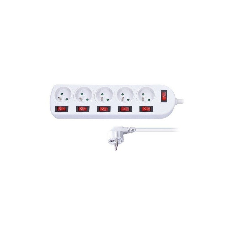 Solight predlžovací prívod, 5 zásuviek, biely, 6x vypínač, 2m PP143