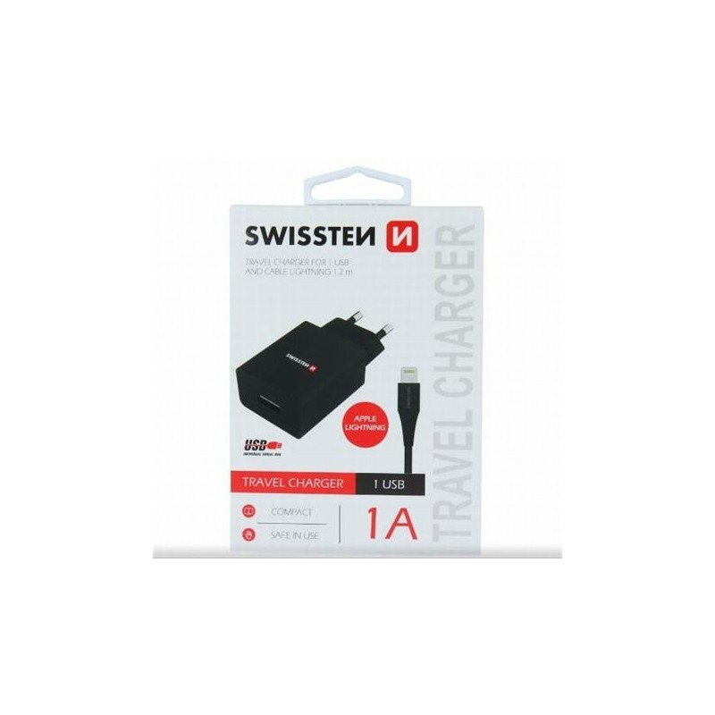 Kvalitní nabíječka SWISSTEN s výstupním proudem 1A. Nabíječka má výstup 1xUSB a kabel USB/lightning 1,2m. Baleno v blistru SWISSTEN
