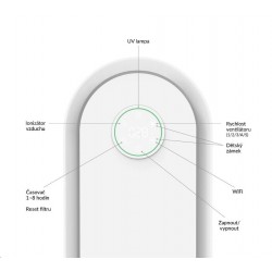 Čistička je opatřena dětským bezpečnostním zámkem. Pokud chcete uzamknout ovládací panel, stisknete zároveň tlačítko UV lampy a tlačítko WiFi po dobu 3 sekund.