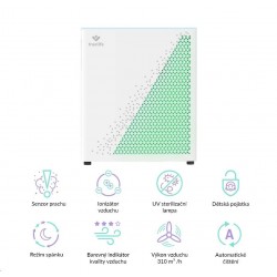 Čistička vzduchu TrueLife vyčistí až 310 m3 vzduchu za hodinu. Je vhodná do místnosti o velikosti 35-40 m2, můžete jí bez obav přenášet. Čistička celkově zlepšuje kvalitu vzduchu, ničí viry, bakterie a další nečistoty a může tak významně pomoci alergikům nebo astmatikům. Čistička je opatřena barevnými indikátory kvality vzduchu, funkcí automatické detekce nečistot a automatického čištění. Bydlíte-li na místě, kde se často práší, potěší vás přítomnost prachového senzoru. 7 násobná filtrace v podobě předfiltru, anti-bakteriálního filtru, HEPA filtru, uhlíkového filtru, katalytického filtru, UV světla a ionizace zachytí až 99,9% polétavého prachu a vyčistí 93,5 % těkavých organických látek. Zároveň zachycuje i viry a koronaviry.