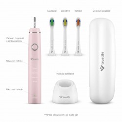 Zdravé zuby a ďasná? Spoľahnite sa aj vy na kefku SonicBrush Compact Pink s modernou sonickou technológiou SonicTrue®. Vďaka jej starostlivost získate žiarivý úsmev a nedáte šancu škodlivým baktériám. Štetinky kefky kmitajú vysokou rýchlosťou až 70 000 pohybov za minútu a každým pohybom odstránia maximum zubného povlaku. Môžete vyberať zo 4 režimov čistenia. Kefka je kompaktných rozmerov a vďaka praktickému cestovnému puzdru si ju môžete vziať kamkoľvek so sebou. Batéria vydrží celých 30 dní. Balenie obsahuje sonickú kefku, dobíjaciu stanicu, tri náhradné hlavice (Sensitive, Standard, Whiten) a cestovné puzdro.