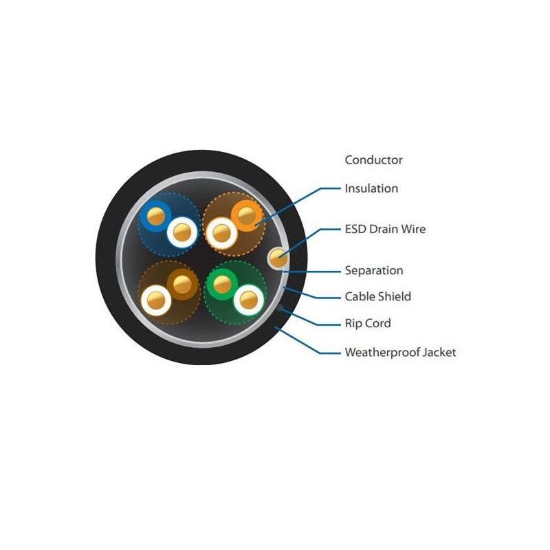 UISP-Cable-Pro je kábel kategórie 5e s vysoko izolačným plášťom odolným proti poveternostným vplyvom, ktorý zabraňuje poškodeniu dažďom, snehom a inými extrémnymi klimatickými podmienkami. Kábel je tiež obohatený o vnútorné fóliové tienenie a odtokový drôt, ktorý ho kolektívne chráni pred elektrostatickým výbojom (ESD) a umožňuje mu udržiavať rýchlosť spojenia Gigabit Ethernet aj v prípade elektromagnetického rušenia.